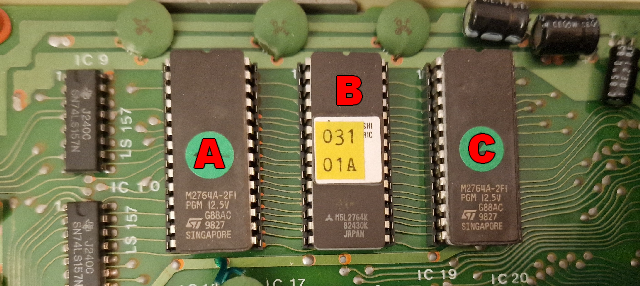 Le BIOS (BASIC) du PHC-25 est logé sur 3 eproms de 8 Ko et est toujours sur support.